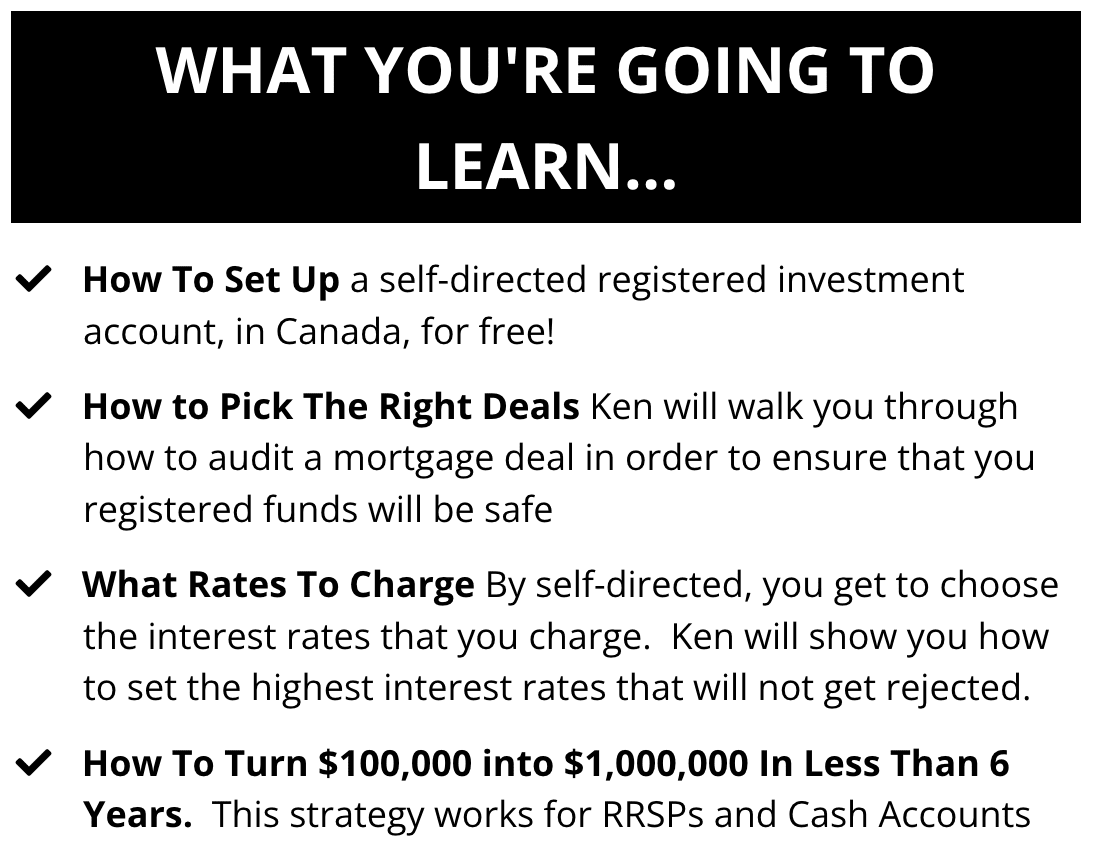 During this live workshop, Ken will show you exactly how to lend your RRSP, LIRA & TFSA Money out in Short Term,